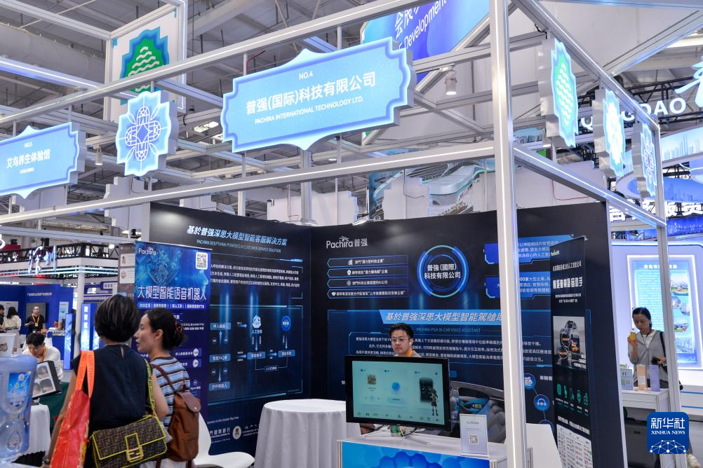 9月12日在北京首鋼園拍攝的2025年服貿會澳門展區普強(國際)科技有限公司展臺。新華社記者 徐欽 攝