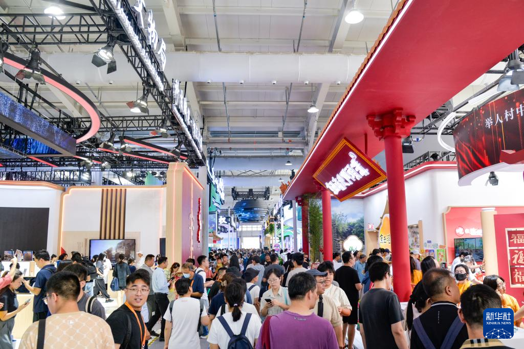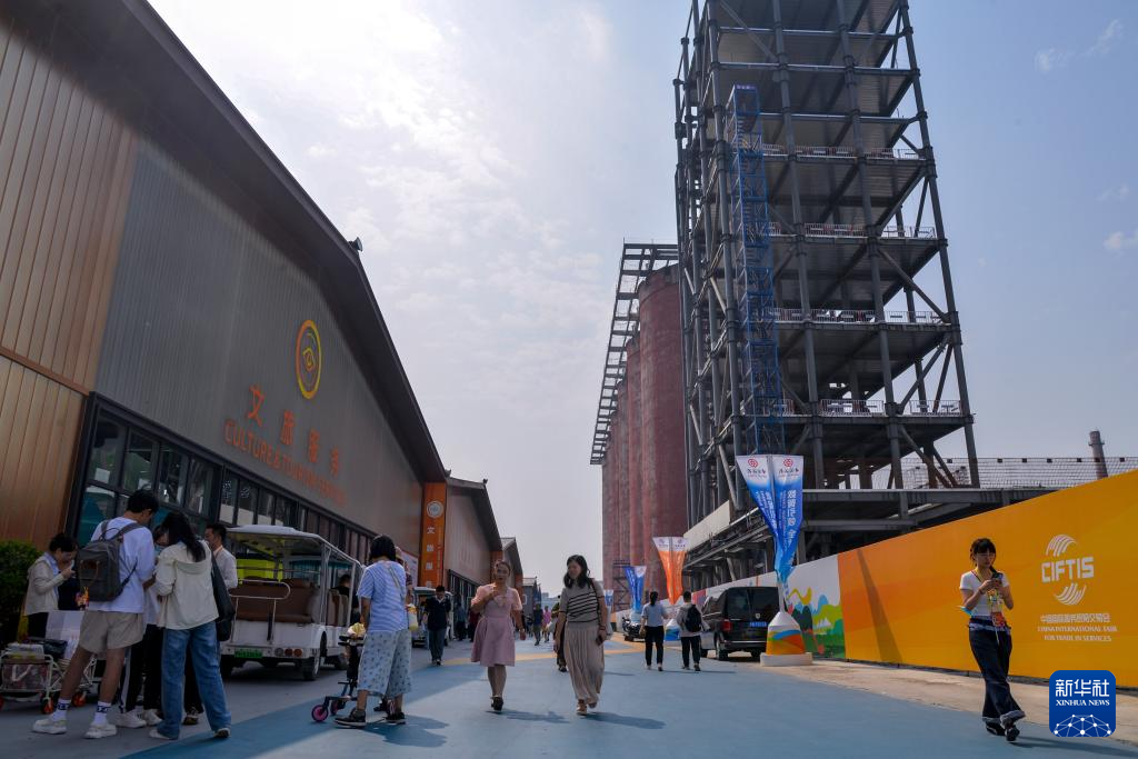 9月13日,人們在北京首鋼園2025年服貿會文旅服務展區參觀。