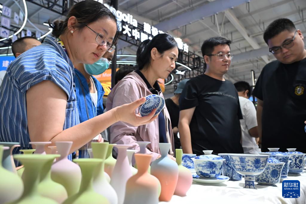 9月13日,觀眾在服貿會江西展臺了解景德鎮瓷器。