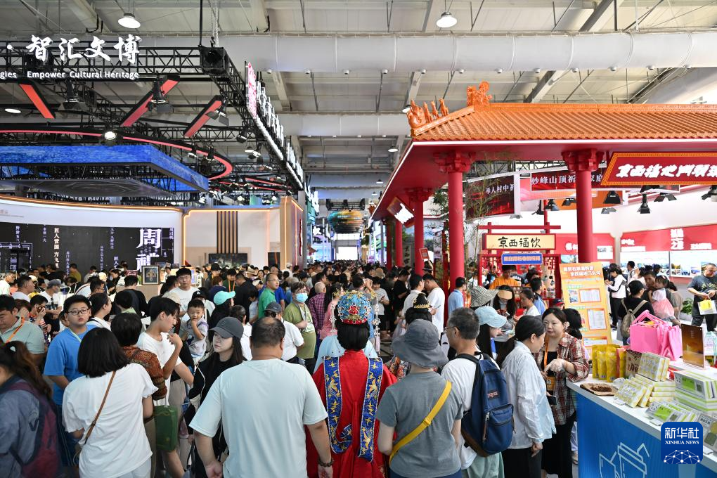 9月14日,觀眾在文旅服務展區門頭溝區展臺前選購文創產品。