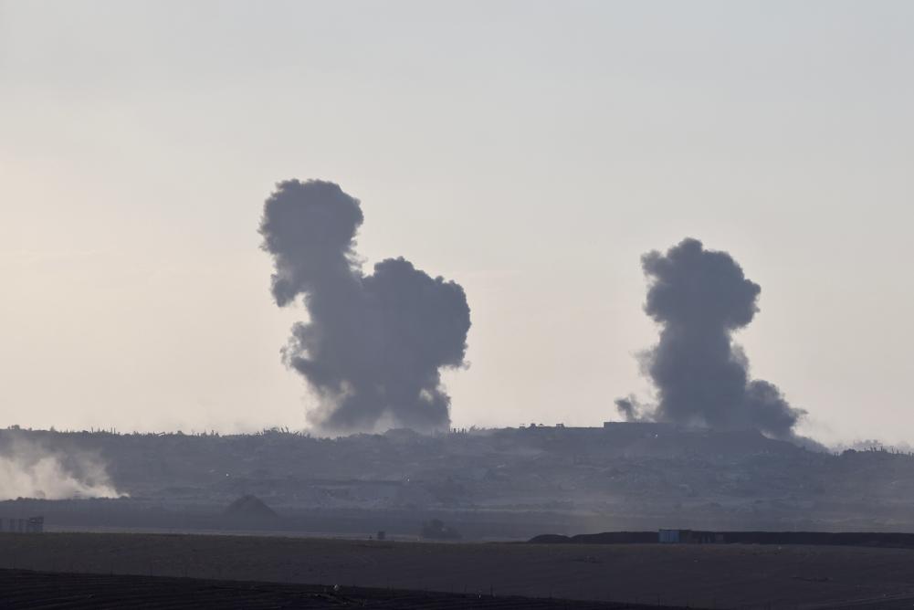 這是9月16日從加沙邊境以色列一側拍攝的加沙地帶遭襲后升起濃煙。新華社發(賈馬爾·阿瓦德攝)