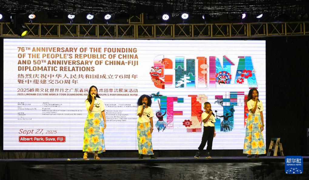 這是9月27日在斐濟蘇瓦拍攝的慶祝中華人民共和國成立76周年暨中斐建交50周年活動現場。新華社發(高鑫攝)