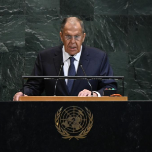 9月27日,在位于紐約的聯合國總部,俄羅斯外交部長拉夫羅夫在第80屆聯合國大會一般性辯論上發言。