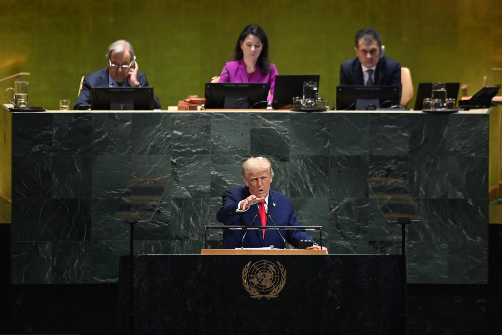 9月23日,在位于紐約的聯合國總部,美國總統特朗普在第80屆聯合國大會一般性辯論上發言。新華社記者李睿攝