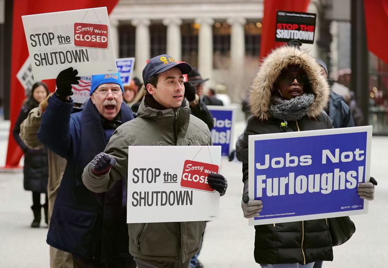 2019年1月18日,在美國芝加哥,聯邦雇員游行抗議政府“停擺”。新華社記者 汪平 攝