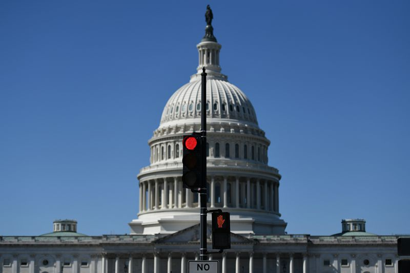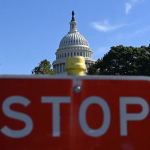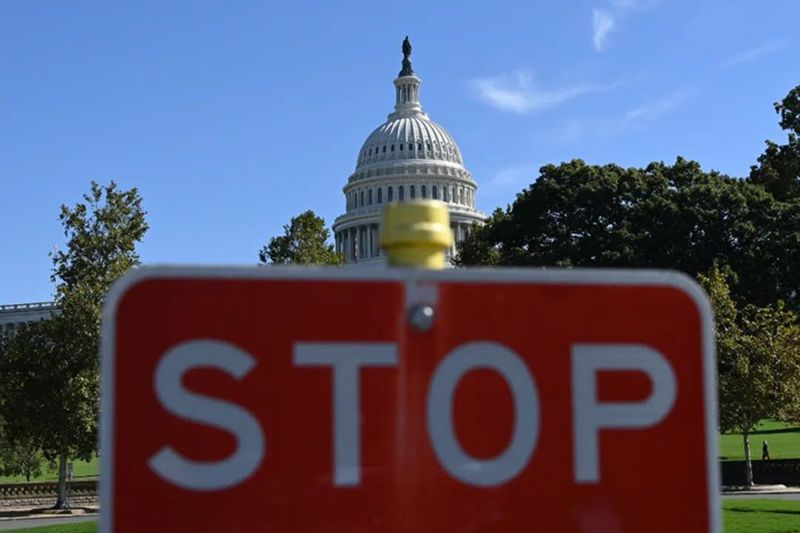 這是10月1日在美國華盛頓拍攝的美國國會大廈和交通標志。新華社記者 李睿 攝