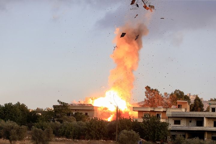 這是2025年9月18日在黎巴嫩南部奈拜提耶附近的泰卜尼特村拍攝的以軍空襲的畫面。新華社發(阿里·哈希紹攝)