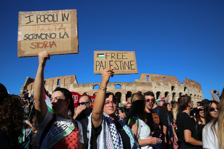 沖突爆發兩周年之際,多國民眾持續舉行聲援巴勒斯坦的游行活動。4日,在意大利、西班牙、法國、英國、愛爾蘭的多個城市,數十萬人走上街頭,要求以色列立即停止對加沙地帶的軍事行動,釋放向加沙地帶運送人道主義物資的“全球堅韌船隊”人員。