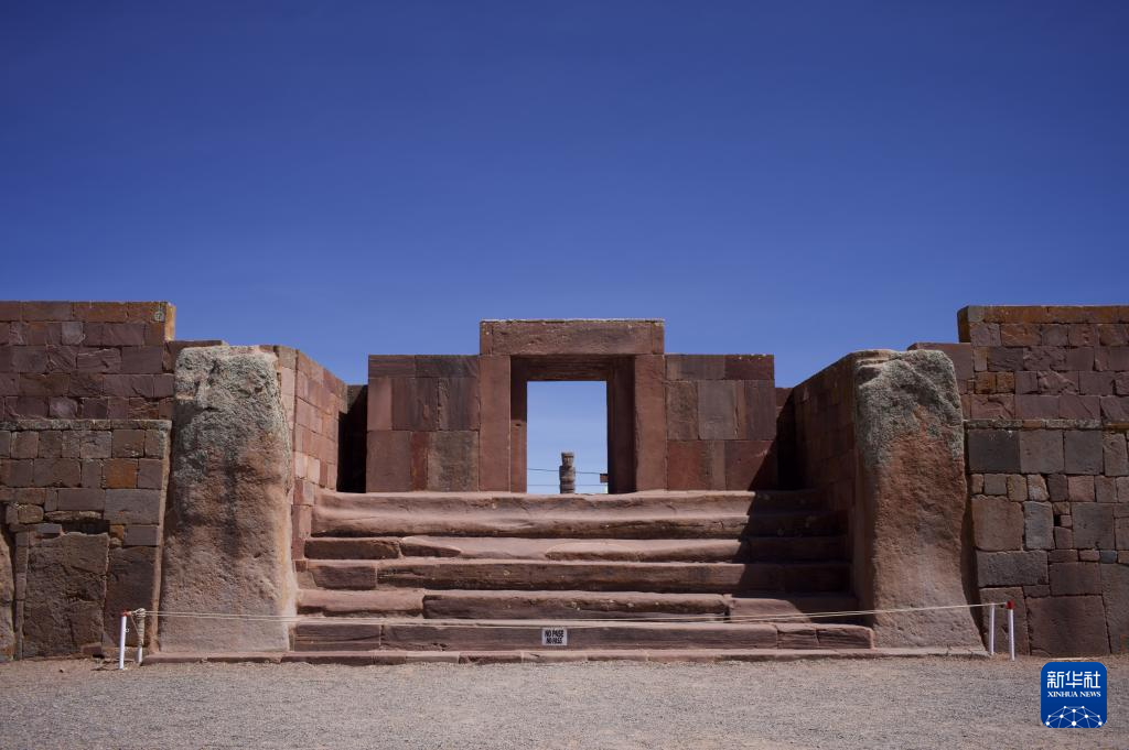 這是8月19日在玻利維亞蒂亞瓦納科古城遺址拍攝的重要建筑遺跡——太陽門。 新華社記者 趙凱 攝