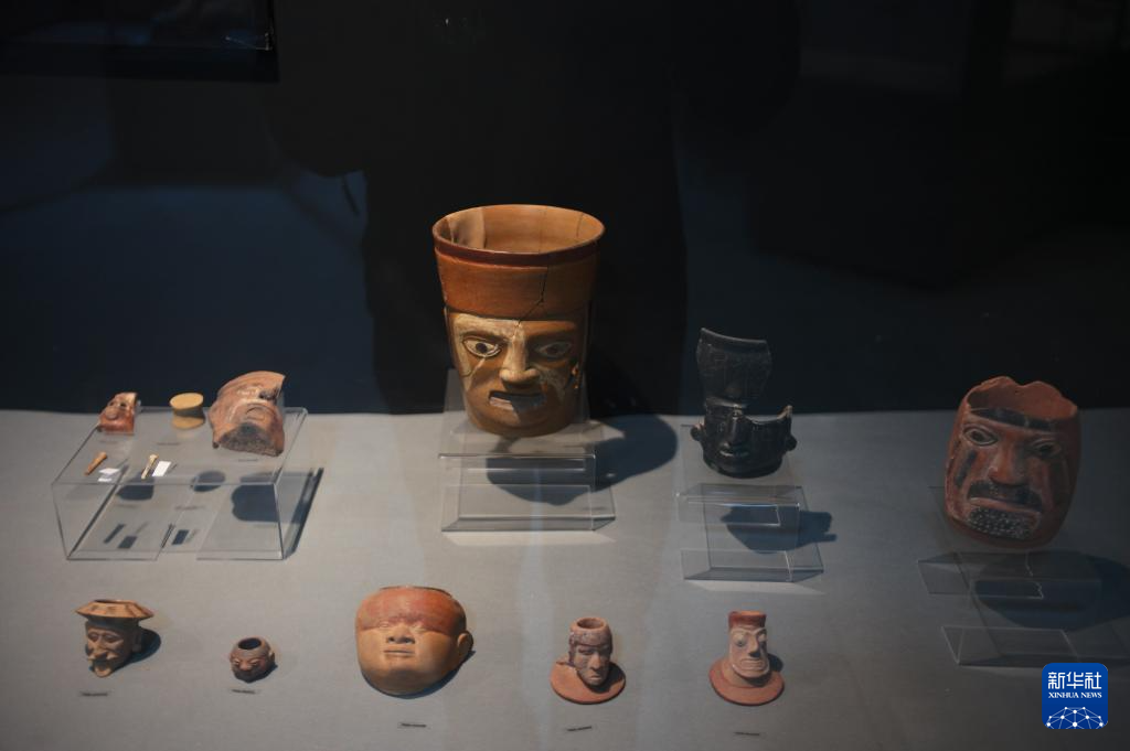 這是8月19日在玻利維亞蒂亞瓦納科陶瓷博物館拍攝的展品。新華社記者 趙凱 攝