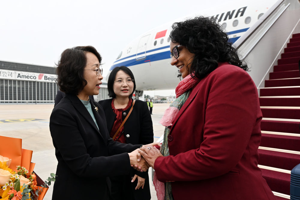 10月12日,來華出席全球婦女峰會的斯里蘭卡總理阿馬拉蘇里亞抵達北京。