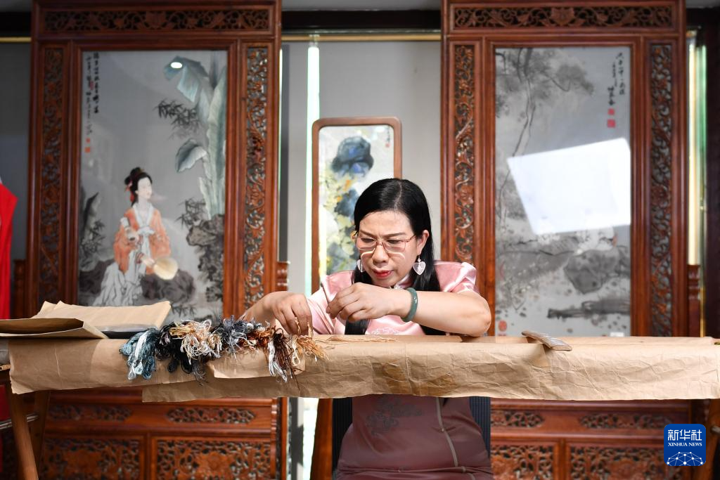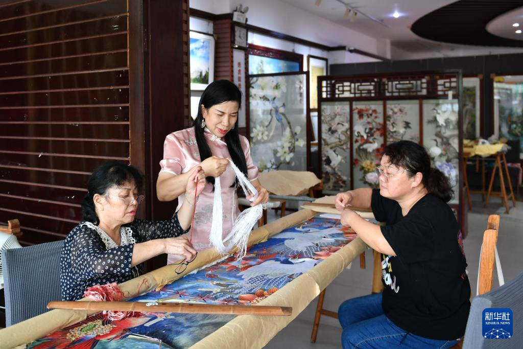 多年來,江再紅走進大中小學授藝,帶徒傳承,積極推廣湖湘文化和非遺技藝,培養大批湘繡傳人……江再紅和團隊嘗試通過數字化設計、跨界聯名、沉浸式體驗等形式,探索湘繡的創新發展之路。
