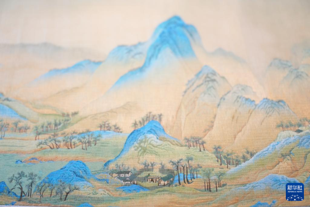 這是在北京舉行的全球婦女峰會現場拍攝的江再紅的湘繡作品《千里江山圖》局部(10月13日攝)。