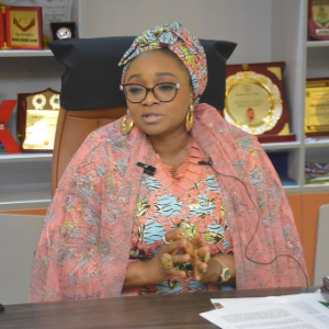 10月10日,尼日利亞婦女事務部長伊曼·蘇萊曼-易卜拉欣在赴華參加全球婦女峰會前在位于首都阿布賈的辦公室接受新華社記者專訪。新華社發(奧拉圖恩吉·薩利尤攝)