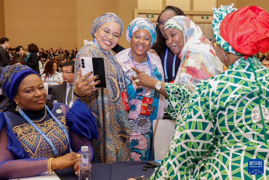 10月13日,參加全球婦女峰會的嘉賓與朋友視頻連線。