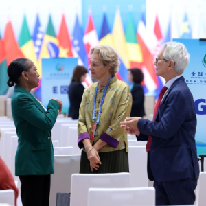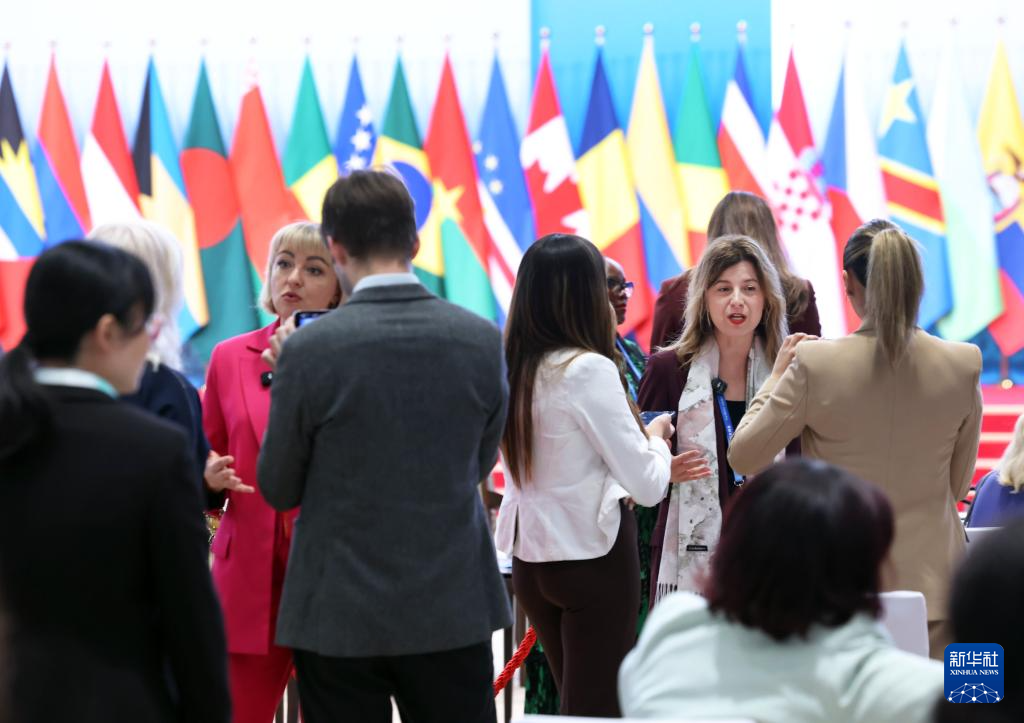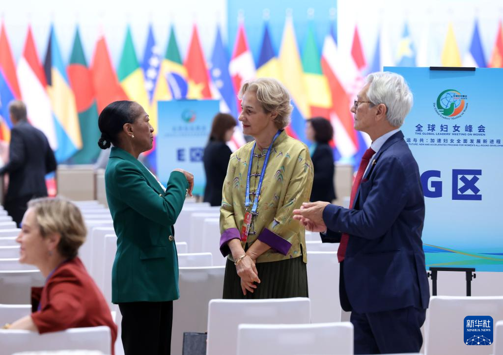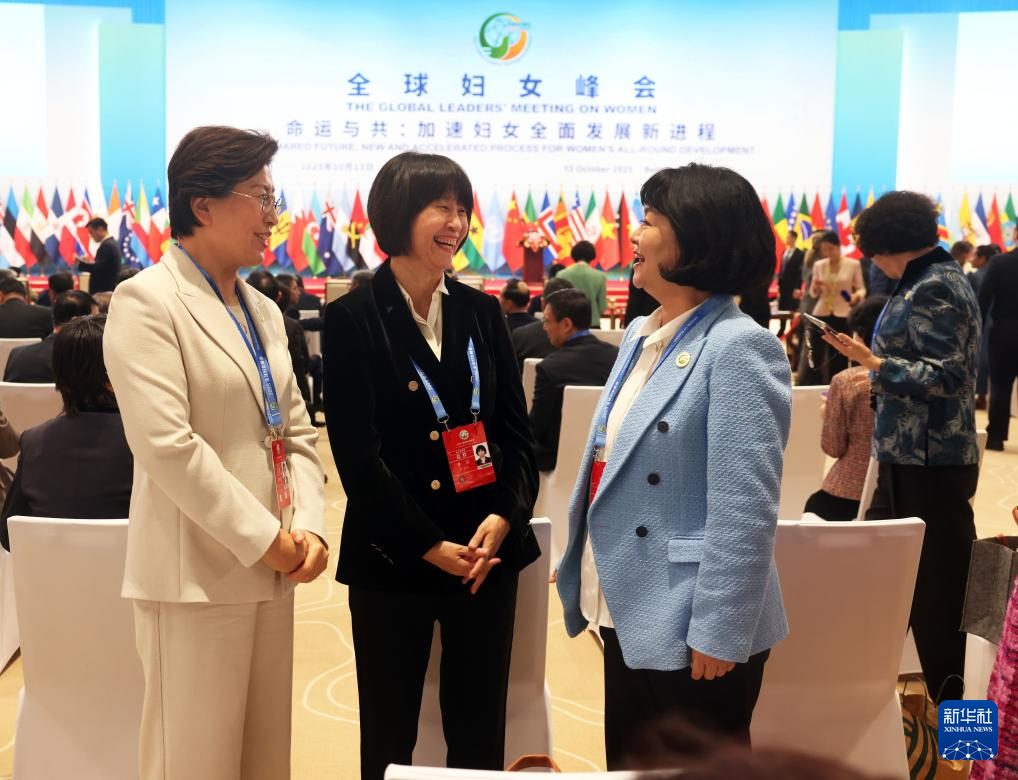 10月13日,參加全球婦女峰會的嘉賓在交流。