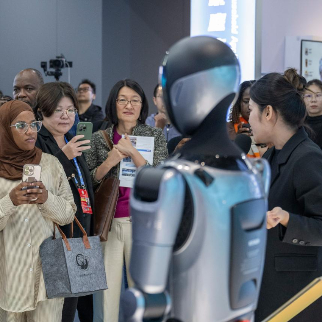 10月14日,全球婦女峰會參會嘉賓在北京經開區機器人大世界參觀。
