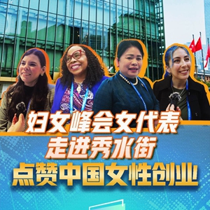 10月14日,來京參加全球婦女峰會的女代表們,走進北京秀水街大廈,參訪婦女發展項目。