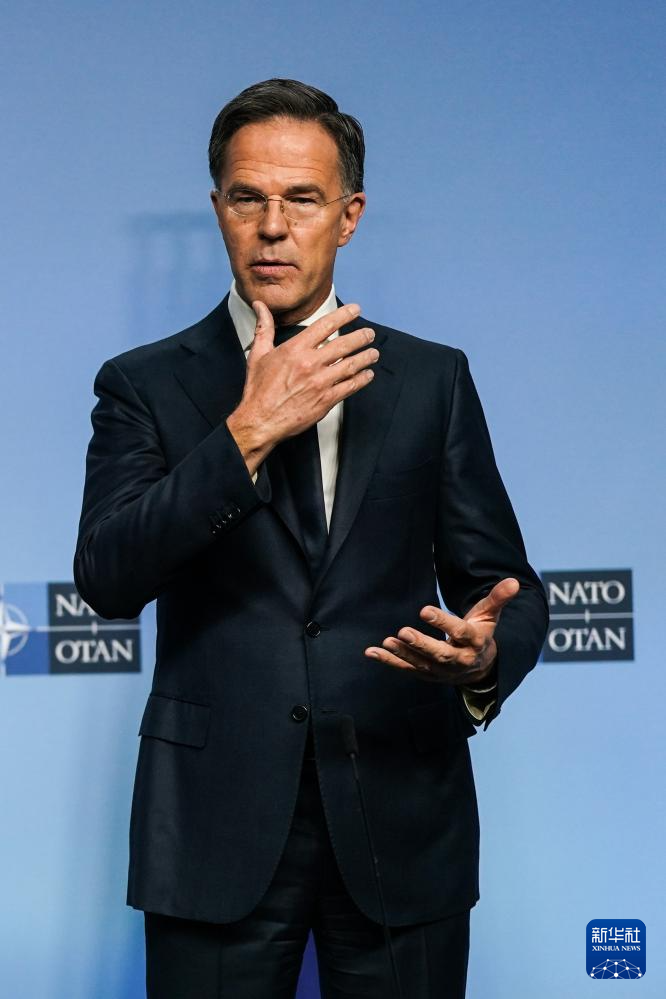 10月15日,在比利時布魯塞爾舉行的北約防長會議上,北約秘書長呂特在記者會上發言。新華社記者 彭子洋 攝