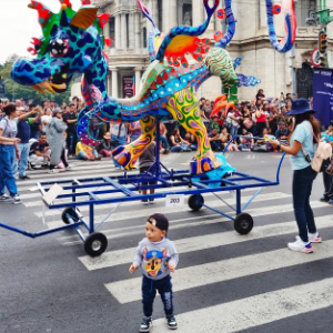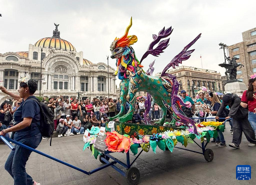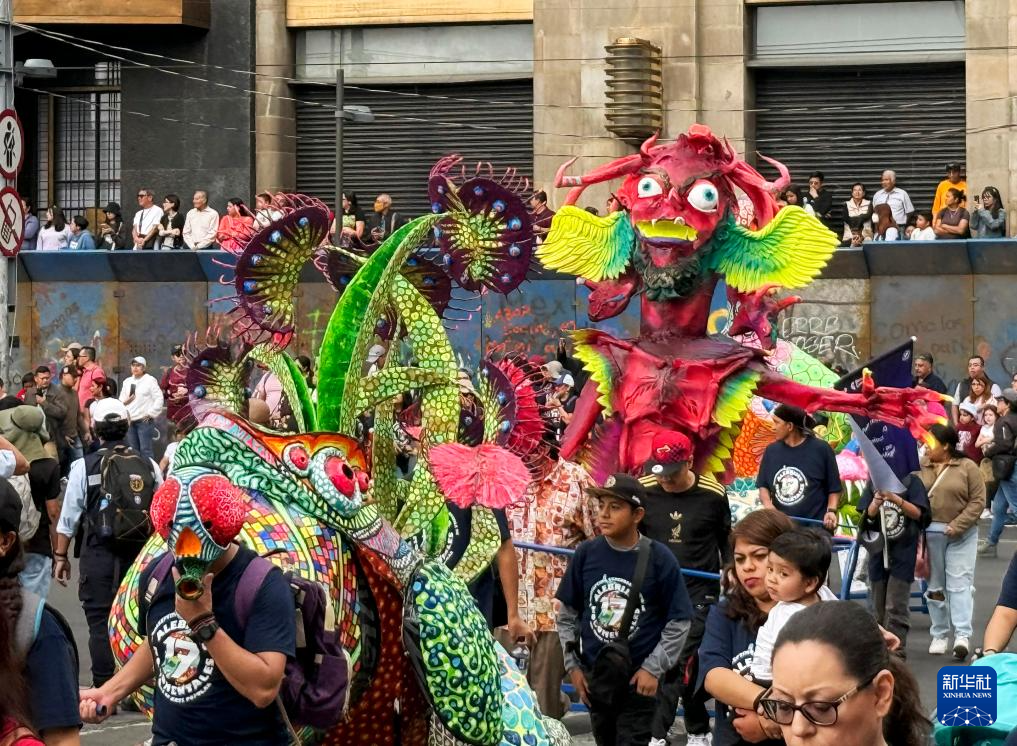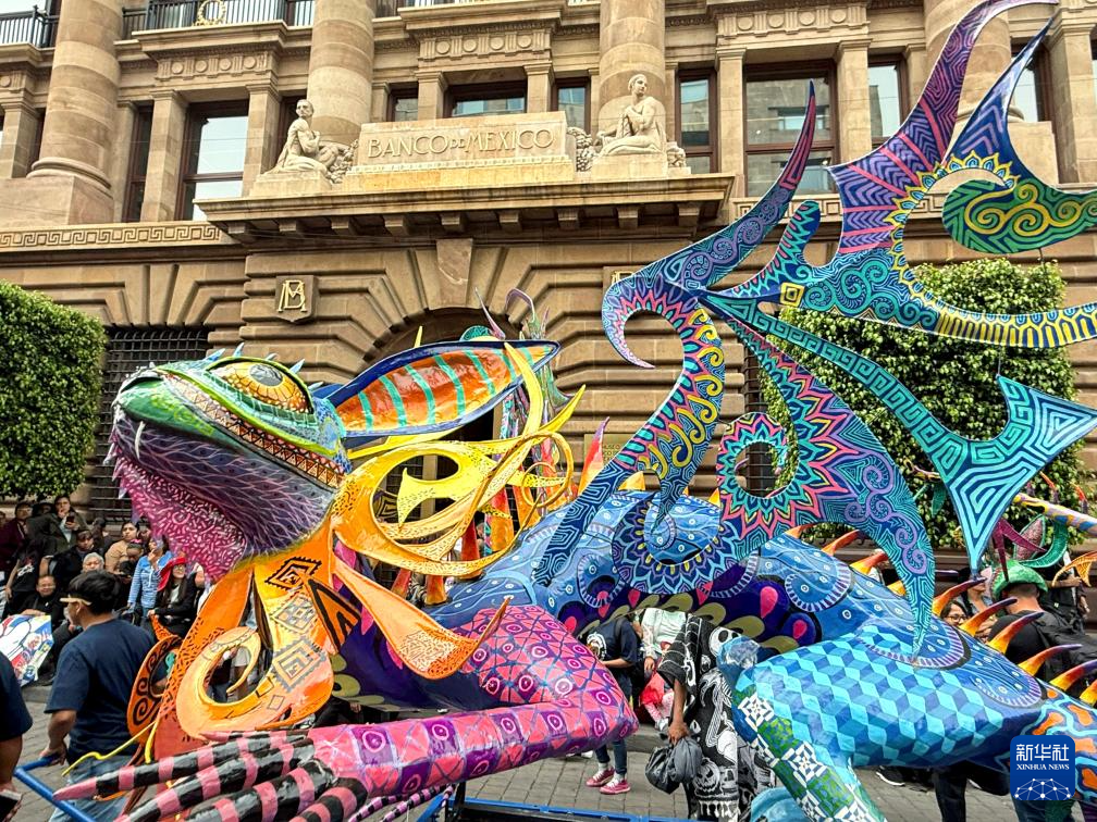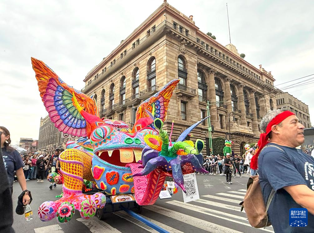 當日,為迎接即將到來的亡靈節,墨西哥城舉辦魔幻動物“Alebrijes”大游行?!癆lebrijes”是一種墨西哥傳統手工藝品,用鮮艷的顏色和豐富的圖案裝飾,展現充滿想象力的奇幻動物形象。