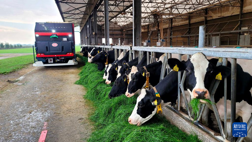 9月30日,在荷蘭呂伐登的瓦赫寧根大學及研究中心乳業園,無人電動車為奶牛分發新鮮牧草。新華社記者 王湘江 攝