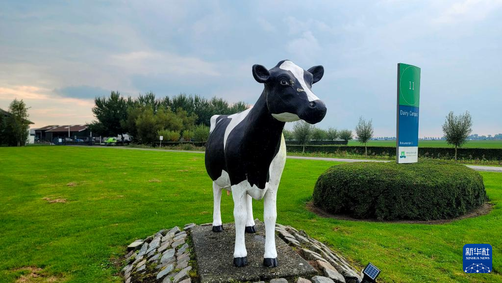 這是9月30日在荷蘭呂伐登拍攝的瓦赫寧根大學及研究中心乳業園入口處的奶牛雕塑。新華社記者 王湘江 攝