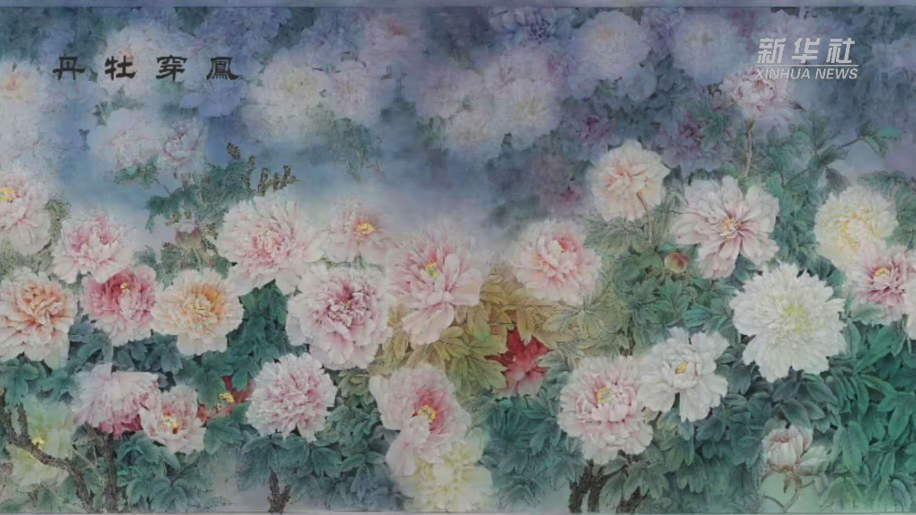 一幅10米工筆牡丹長卷《鳳穿牡丹》,在日前舉行的全球婦女峰會配套活動“數智賦能婦女和女童成果展”上亮相,受到參觀者的關注。