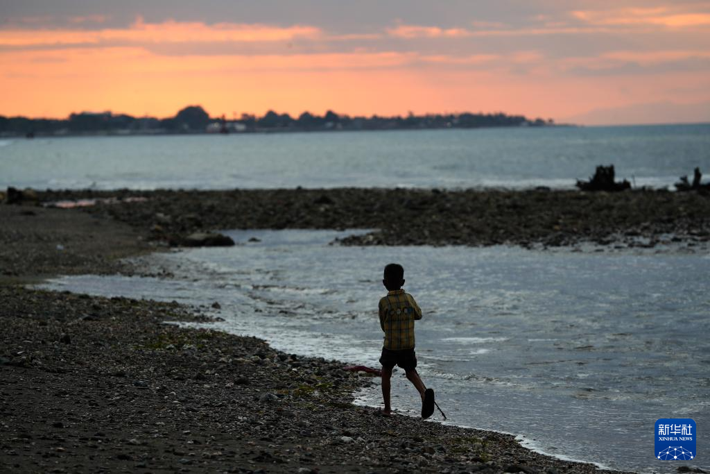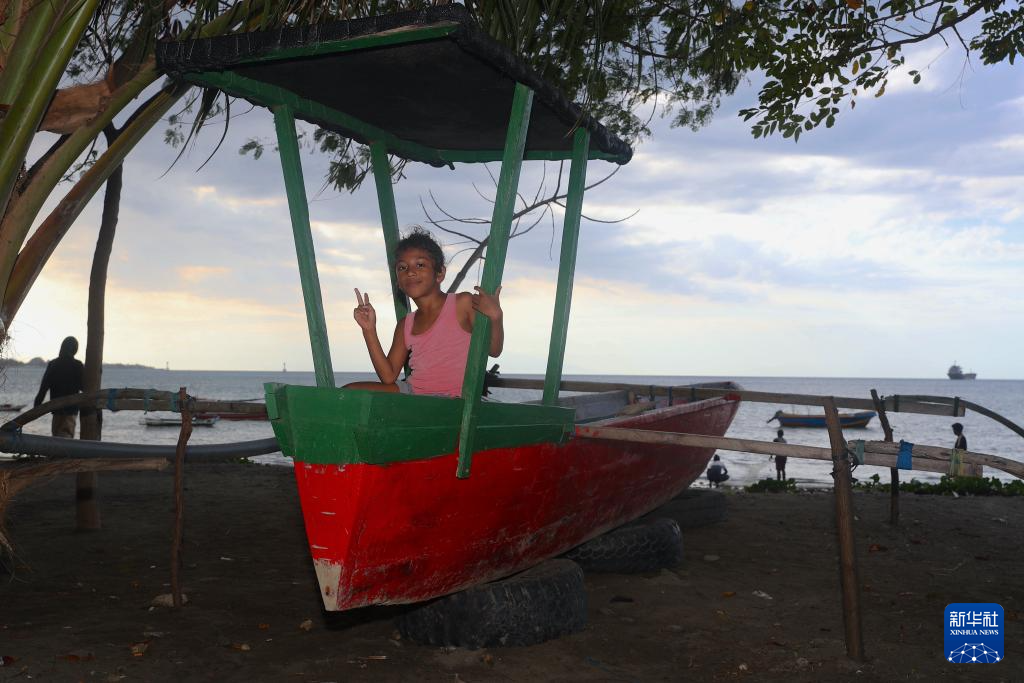 9月16日,在東帝汶帝力,一名兒童在海邊玩耍。新華社記者 岑云鵬 攝