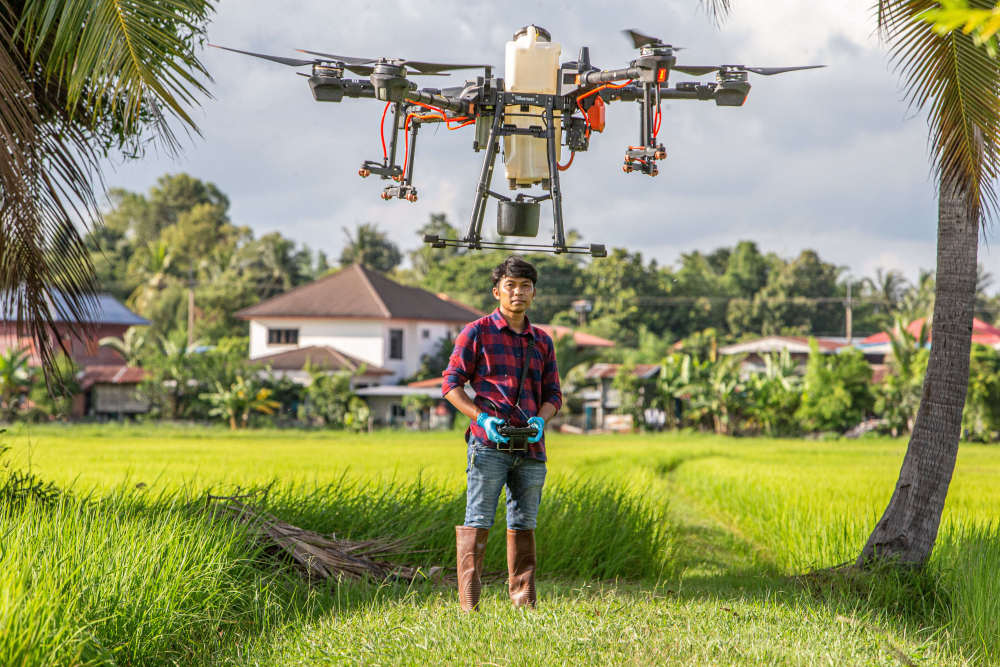 2022年8月1日,農民在泰國黎逸府操作大疆農業植保無人機。近年來,以植保無人機為代表的智能化機械在農業生產中大顯身手。中國制造的農業植保無人機為泰國當地農民賦能,推動農業生產更加高效安全。