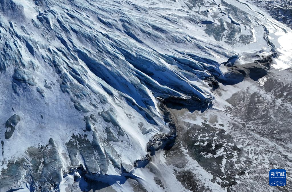 這是3月21日在丹麥自治領地格陵蘭島南斯特倫菲尤爾附近拍攝的冰蓋(無人機照片)。新華社記者 趙丁喆 攝