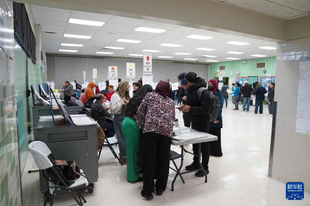 11月4日,選民在美國紐約市的一個投票站內投票。