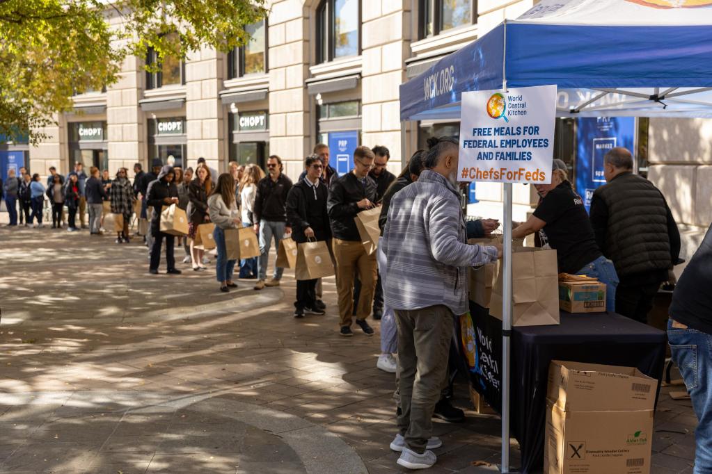 當天活動的主辦方是慈善組織“世界中央廚房”。據了解,該組織從10月27日起在華盛頓市區設立多處救濟點,截至11月5日早上,已發放超過3.6萬份食物。除了華盛頓市中心,他們還在機場、空軍基地等地設立救濟點?,F場工作人員表示,5日當天來領免費午餐的人數明顯增加,庫存消耗速度明顯加快。