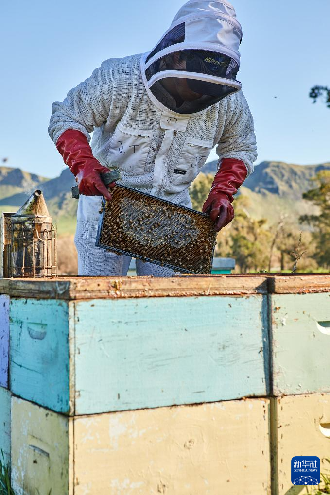 2025年8月,新西蘭北島一家蜂蜜生產企業的工作人員在檢查蜂箱。