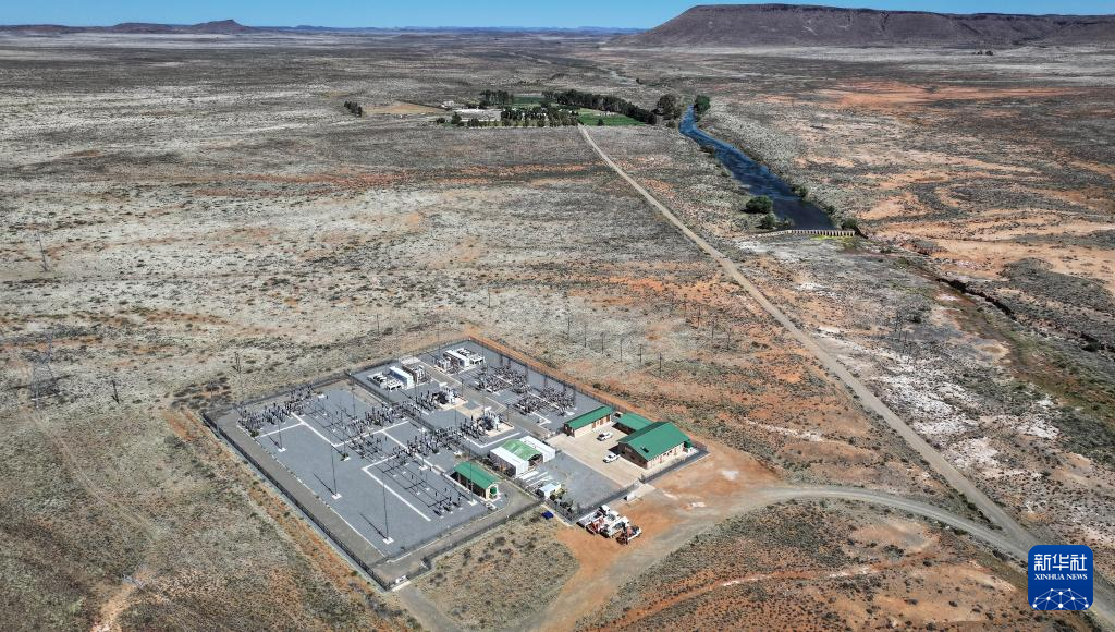 這是10月22日在南非北開普省德阿鎮拍攝的德阿風電項目變電站(無人機照片)。新華社記者 韓旭 攝