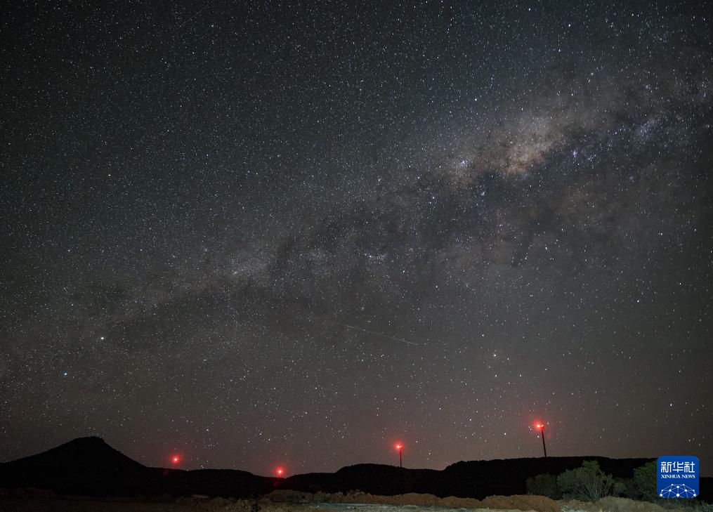 10月22日,在南非北開普省德阿鎮,德阿風電項目的風機在星空下運轉。新華社記者 韓旭 攝