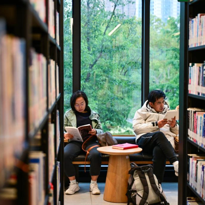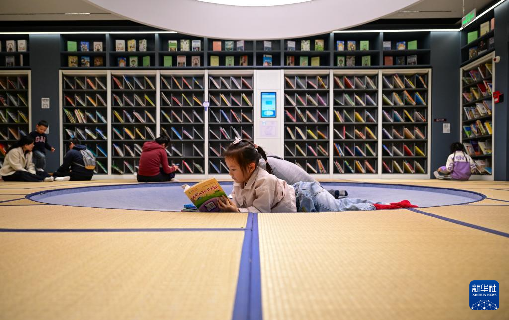 11月9日,小朋友在上海市虹口區和平書院一間榻榻米閱讀室內看書。