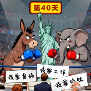 美國民主、共和兩黨互相角力,好比一輪又一輪的“擂臺賽”,兩黨在臺上激戰正酣,臺下民眾叫苦不迭。這場“比賽”何時休?