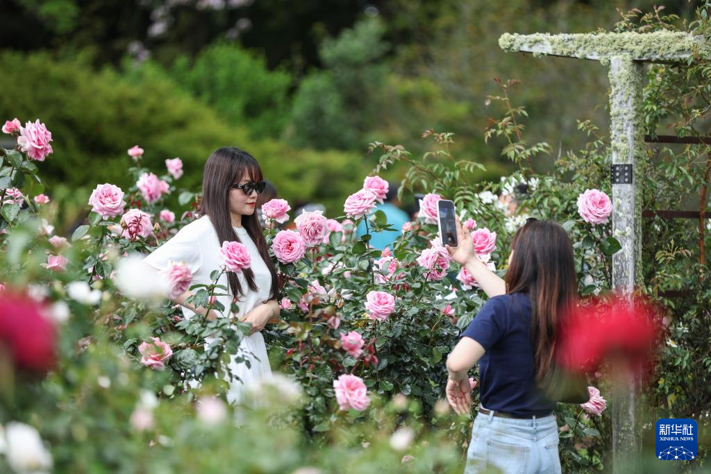 11月9日,游客在新西蘭奧克蘭帕內爾玫瑰園賞花。