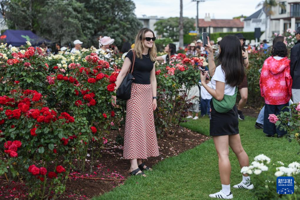 11月9日,游客在新西蘭奧克蘭帕內爾玫瑰園拍照。