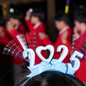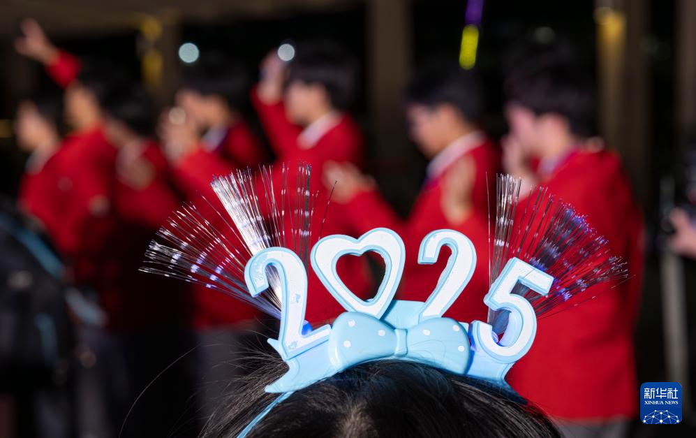 11月10日,在國家會展中心(上海)舉行的第八屆進博會志愿者離園儀式上,一名“小葉子”戴著“2025”字樣的發箍。