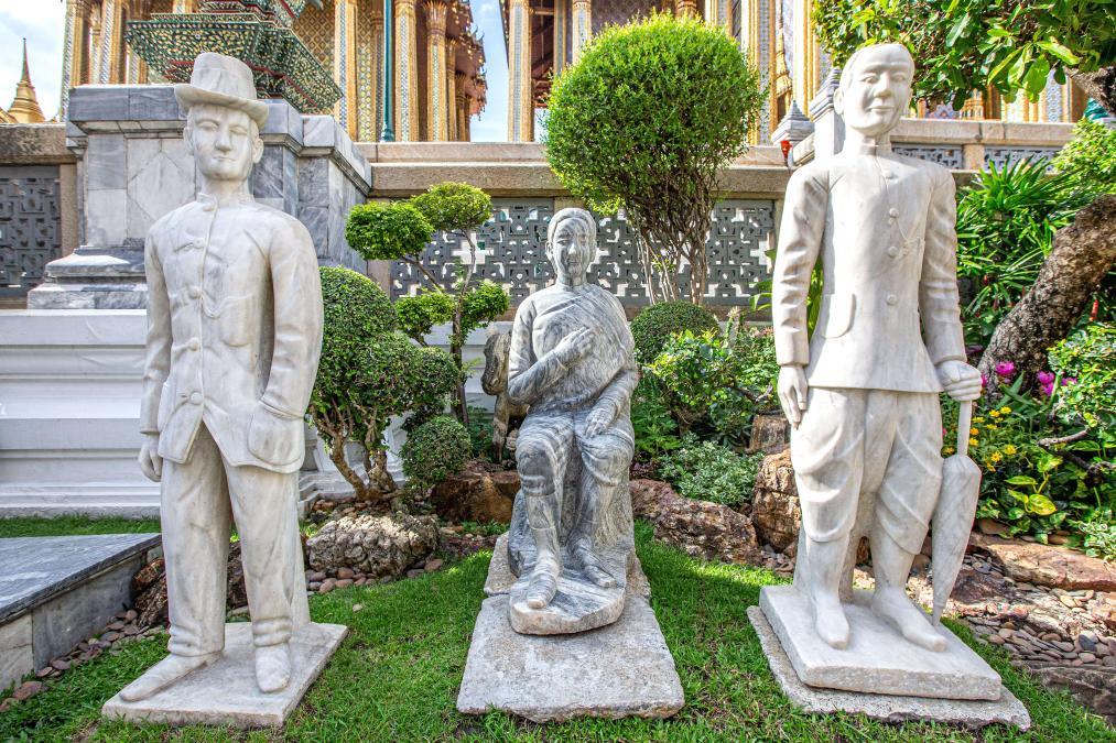這是2022年7月20日在泰國曼谷大王宮玉佛寺拍攝的來自中國的大理石雕像。新華社記者王騰攝