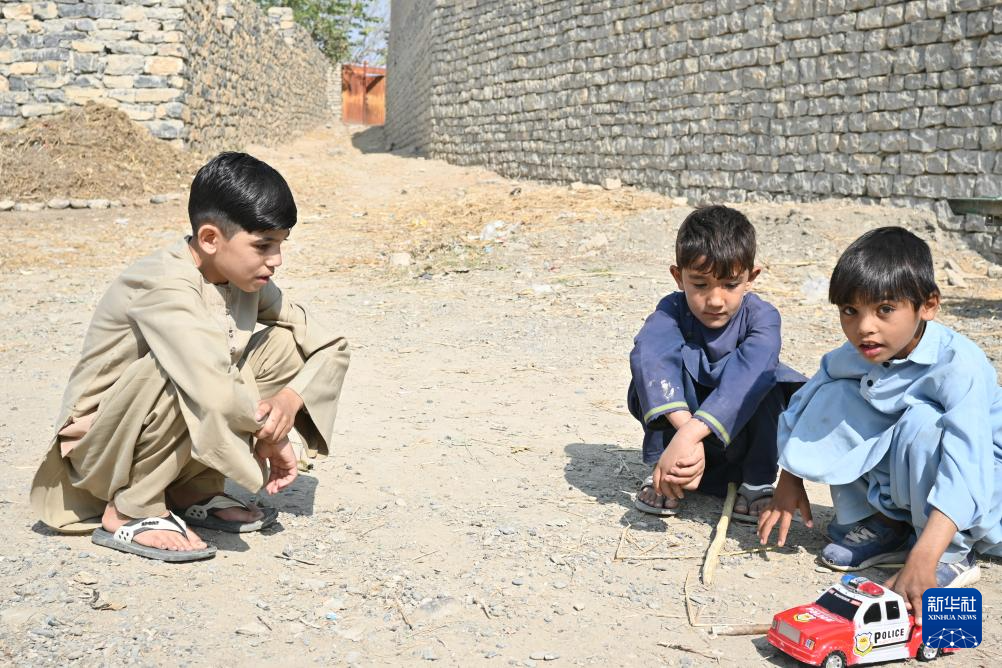 10月28日,在阿富汗東部霍斯特省阿里謝爾地區一個小村莊,比拉爾·沙菲克(左)跟小伙伴們在一起。新華社記者 張藝繽 攝