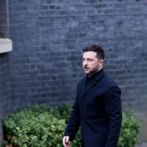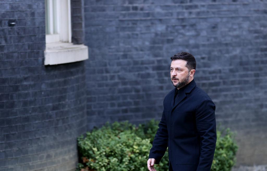 10月24日,在英國倫敦,烏克蘭總統澤連斯基走向唐寧街10號首相府。 新華社記者 李穎 攝