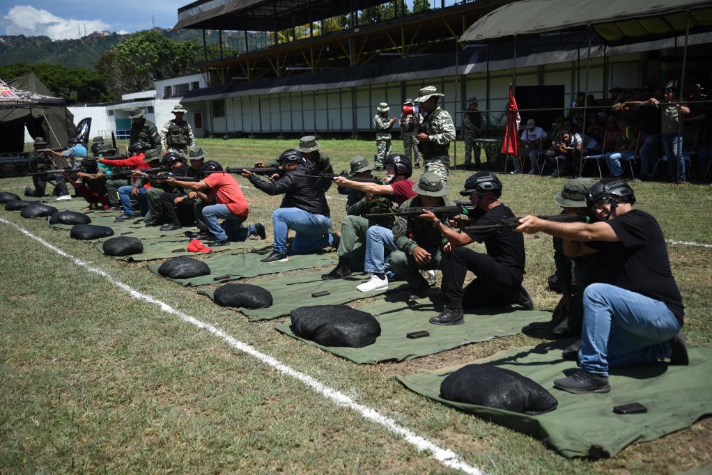 9月13日,委內瑞拉民兵在位于首都加拉加斯的蒂烏納堡陸軍基地進行射擊訓練。新華社發(薩爾戈多攝)
