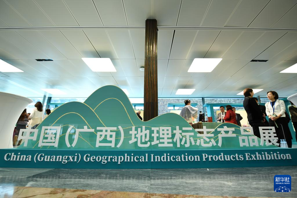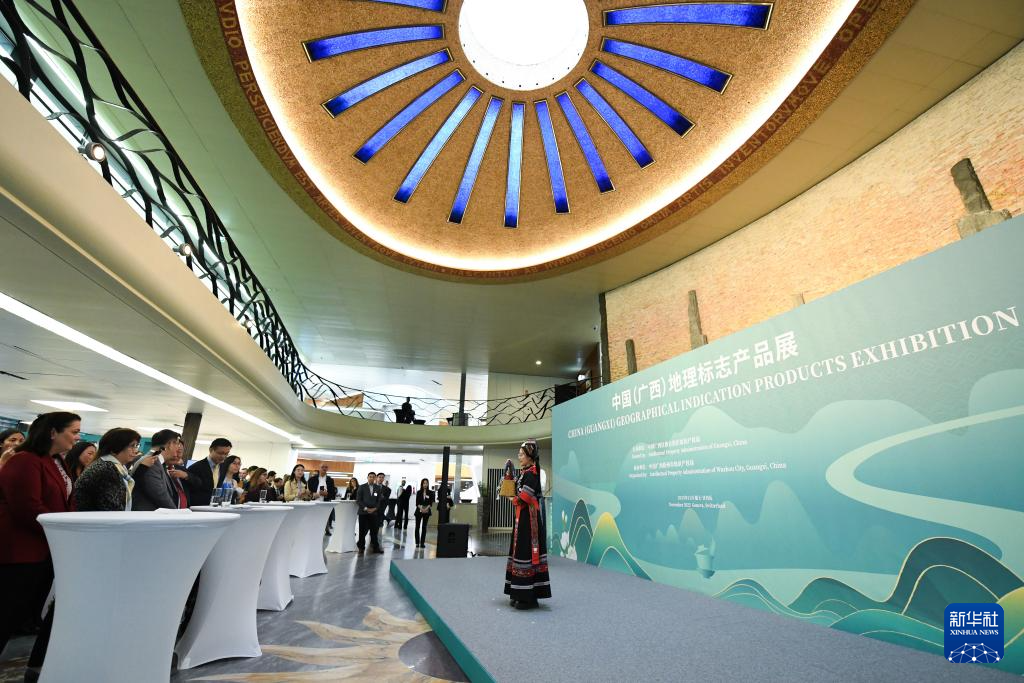 11月17日,在瑞士日內瓦世界知識產權組織總部,人們參觀“中國(廣西)地理標志產品展”。