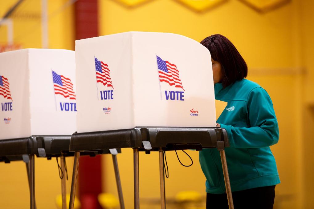 2024年3月5日,選民在美國弗吉尼亞州彼得斯堡的投票點參與投票。新華社發(溫斯特德·巴恩斯攝)