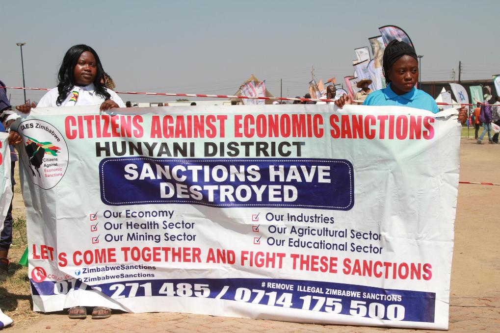 10月25日,在津巴布韋首都哈拉雷舉行的“南部非洲發展共同體(南共體)反制裁日”活動上,津巴布韋青年舉著反對制裁的海報。新華社發(塔法拉攝)