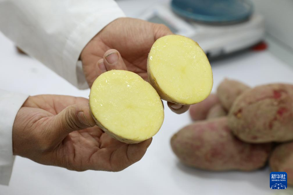 這是11月25日在位于烏茲別克斯坦首都塔什干的烏茲別克斯坦科學院遺傳學與植物實驗生物學研究所拍攝的馬鈴薯。