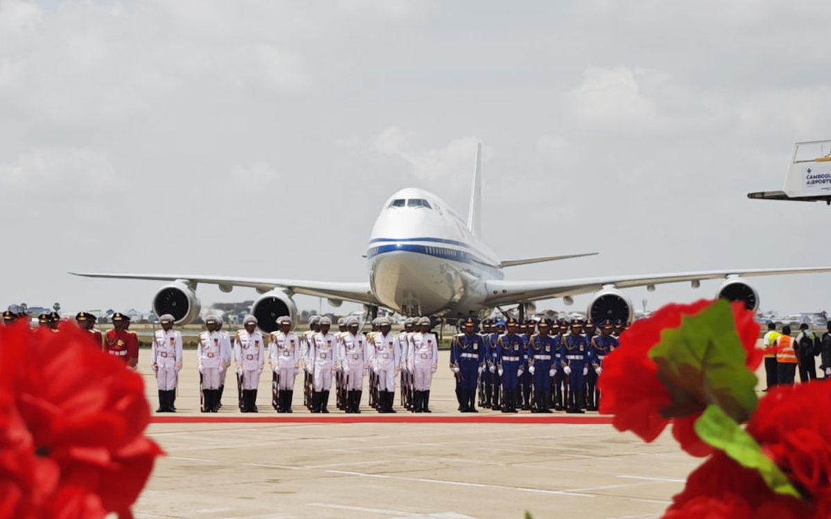 新華圖訊丨習近平乘坐的專機降落柬埔寨金邊國際機場
