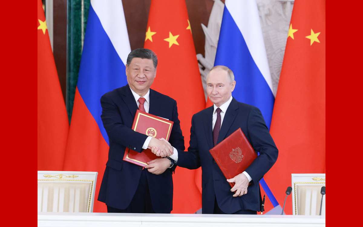 新華圖訊丨習近平同普京出席簽字和合作文本交換儀式